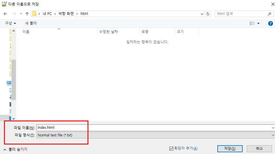 뒤에[ . html ] 로 저장을 해야, 이 파일이 html 파일이라고 컴퓨터가 인식을 합니다!